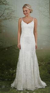 Remember when looking at sizes that wedding dresses come up small, so you will probably have to go up at least one size to normal.